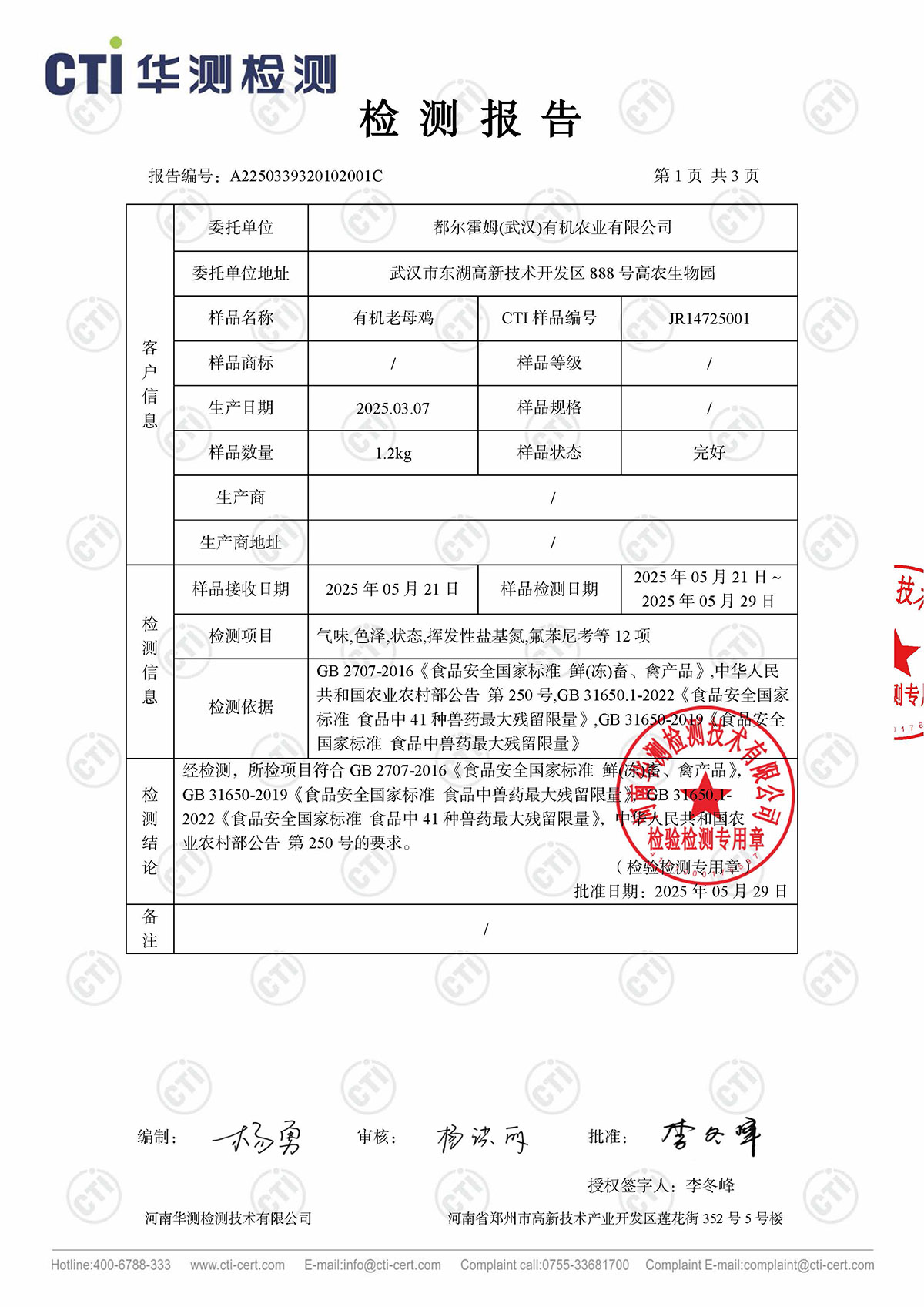 老母鸡检测报告
